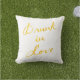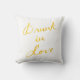 Denna roligt och flirta utomhuskudde accentueras med ordspråket "Drunk in Kärlek" i ett fet guld-penseldrag på vit bakgrund, skapar det perfektens tillbehör för parets bord vid ett utomhusdäck i bröllop, eller på det nya lyktdäcket, tåget eller fläsket.