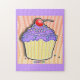En färggrafik Frosted Cupcoa med stjärnsprinkler mot en roligt lavender zebra-bakgrund gör att efterrätt kan skaka upp sig på tiden för bilder med en söt tand och ett pussel. Använda det avslutat pusslet som dekorativ dekorationsdekoration för kök, hem eller bageri!