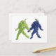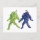 vykort för grafikvänner. Ett par druvklasar, en grönt och en lila, går tillsammans hand i hand. Gröntens stjälk verkar vara tittar vid lila klingan. Den lila druvstammen ger snabbt upp blicken. Denna illustration skapar en vismisk scen med de mänskliga egenskaperna vänskap, kärlek, vänlighet och tolerans när deras studsande steg för dem framåt tillsammans.