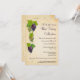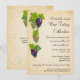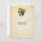 En druvvin med fyra klasar av vindruvor ligger längs den vänstra sidan av denna inbjudan som är riktad mot en vinprovningshändelse eller cocktailfest. Druvvinet slingrar sig bakom druvorna mot en pergamentbakgrund. Pergamentet upprepas på baksidan tillsammans med druvvinet för eventuell extra information, eller så kan texten raderas för att lämna baksidan svart med bara en klase druvor. Finns med matchande produkter.