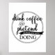 En typografisk snyggt poster med citatet "drick kaffe och låtsas att du vet vad du gör". Designen visas i svart på vitt, men bakgrunden kan anpassas till en annan färg efter eget val. Den här poster gör ett underbart tillägg till din hemdekoration eller en perfekt gåva till en vän eller älskad. Finns i olika storlekar.
