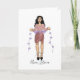 Kvinnlig figur som håller en sträng av lila hjärtan som säger "du är älskad" gratulationskort. Söt, feminin Alla Hjärtans-dags-illustration för februarikort. Sött och flickaktigt designkort för döttrar, vänner eller sondöttrar. Lägg till ett namn och ett personligt meddelande inuti.