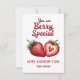 Den här älskliga hjärt-dagen klassrumskortet har en charmig akvarellillustration av två söta bär, varav ett med ett hjärta, tillsammans med det söta meddelandet ”You Are Berry Special” på en justerbar vit bakgrund. Med anpassningsbar text för ”Happy Valentine’s Day” och avsändarens namn är det perfekt för att lägga till en personlig touch. Baksidan är utformad i en anpassningsbar rosa färg, vilket ger en livfull och glad utseende. Perfekt för Alla hjärtans dag, Galentine's Day, Mors dag eller någon annan tillfälle för att fira någon speciell, detta kort är lämpligt för både barn och vuxna!