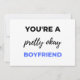 Du är en ganska okej pojkvän design. Detta är ett kort roligt citat som är bra som en present till pojkvän. Även lämplig som en allmän pojkvän kärlek present för årsdag, födelsedag, jul eller Alla hjärtans dag.