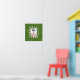Fetstilen "Du är en Lucky Anka" centreras mot gröntens bakgrund. Orangen och den svarta texten sitter på en vit rektangel med stora texturerade vita prickar runt den, vilket ger en lekfull kontrast mot den heltäckande bakgrunden i färg.