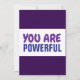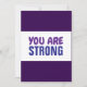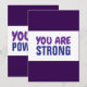 Två sidoformar, starka på ena sidan, kraftfulla på den andra. Några dagar behöver du en främling som påminner dig om att du har har det här. Var det en främling för en person som behöver höra det. Du är stark. Du är mäktig. Ge människor makt genom att påminna dem om att de är starka, mäktiga och kapabla. Allt är inte borttappad. Sak är inte hopplöst. De är inte hjälplösa. Designbeskrivning: På framsidan står "Du är stark". Orden "Du är" har ett stort versalteckensnitt för handskrift av stil lila på en rad högst upp i designen. Ord "Strong" ligger under det teckensnitt som används i versalerna blue sans serif. Texten på båda linjer är ungefär lika bred över designområdet och ungefär lika hög trots de olika typsnitten. Texten centreras på en vit rektangulär bakgrund. Under det är det en mörk lila färg. Baksidan lyder: "Du är mäktig." Samma design som framsidan, ett teckensnitt med en något annorlunda storlek eftersom "kraftfull" är längre ord än starkt. Texten är mallar och du kan anpassa färg, typsnitt etc. ytterligare.