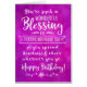 Önska någon en grattis på födelsedagen och påminna dem om vilken välsignelse de har i ditt liv med den här eleganten som bokstaverar stil typografi. Frontof card har ett vitt meddelande: "Du är en underbar välsignelse för alla som känner dig och du sprider vänlighet och glädje var du än är. Grattis på födelsedagen!" Design visas på digitalt texturerad lila med vattenfärgsbakgrund Inside innehåller det här meddelandet men kan anpassas efter dina behov: Din födelsedag är en perfekt att påminna dig om: Du är en fantastisk gåva till alla som känner dig, särskilt mig. Må Välsigna dig vara kom och alltid!