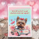 Klossande söta sättet att säga “Jag älskar dig!” Detta valentinskort har en bedårande Yorkie som kör omkring i en pastellrosa lastbil omgiven av hjärtan och blommor. Den främre ordvitsen lyder “Du är ett pup-ulärt val för min hjärta,” och på insidan står det “Glad Alla hjärtans dag!” Perfekt för din partner, crush eller den där vännen som i princip är din emotionella stödpelare. Sött, lekfullt och garanterat att ge svansvagg och leenden.