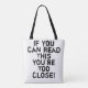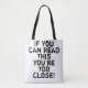 Ett lustigt citat i ett olyckligt teckensnitt. Frasen lyder: Om du kan läsa detta är du för nära.