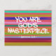 Den kristna inspirerade designen säger "Du är Guds mästerverk" och inspireras av Ephesian 2:10 som lyder "För vi är Guds hantverk, skapat i Jesus Kristus att göra bra verks, som Gud förberedde på förhand för oss att göra". Det här kristna citatet är skrivet i graffiti-typsnitt som täcker ett vågrät faux handmålat struktur som har en rosa bakgrund med akva, gult, blått, lila, grönt och burgundigt linjer. Perfektens presentidé för en kristen tonårsflicka, en kristen kvinna, en kvinnlig pastor, en religiösa eller vilken kristen som helst.