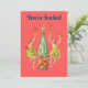 Du är ett inbjudet kort med två kvinnor som dansar runt ett glas flaska med blommor och orangar. Retrodesign med en vrid. Fungerar glädjen att fira ett evenemang. Meddelanden eller information om anpassadet både fram och tillbaka. Ändra det till vad du vill.