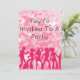 Du är inbjuden till en fest Inbjudan är en cool rosa bakgrund med silhuetter av människor som dansar.