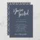 Du är inbjuden till modern manusbröllop. Modern bröllop-meddelande med geometrisk bakare. Färger kan bytas ut mot kostym i ditt färg-system. Bensin blå.