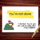 Trösta dem på det mest underligt tröstande sättet möjligt. Detta udda kort har en kanin som tittar fram bakom buskarna, bara för att säga: de är inte ensamma — faktiskt kanske de är för mycket inte ensamma. En perfekt blandning av sarkastiskt stöd och underlig värme för sympati, uppmuntran, tänk på dig eller bara för att.