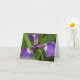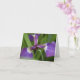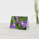 Detta vykort fångar en häpnadsväckande närhet till en vibrerande lila iris-blomma, och dess blad sprids på ett snyggt sätt så att man kan se de komplicerade detaljerna i dess centrum. Riken färg och det ömtåliga struktur är vackert utvisade, vilket belyser eleganten av denna folkliga blomning. Det är ett kort för perfekt av trädgårdsälskare, blommigt-entusiaster, eller någon som uppskattar naturens skönhet