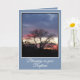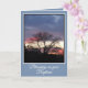 Detta vackra dopkort för vuxna visar en fantastisk röd och lila solnedgång sedd genom siluetten av ett ekträd. Orden på framsidan lyder "Välsignelse över din dop". Skriftordet på den vänstra insidan är från Jesaja 43:1 som säger: "Frukta icke, ty jag har förlossat dig, jag har kallat dig med namn, du är min". Meddelandet på den högra insidan lyder: "Från solens uppgång till dess nedgång må Herrens namn lovprisas genom din lydnad, din tro och din gång med Honom för evigt. Lycka till".