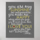 Ljust och glatt, denna originella design i subwayskonst-stil med sångtexten "You Are My Sunshine" kommer att lysa upp vilket klassrum, barnkammare, lekrum eller förvaringsrum som helst! Det är en så speciell sång för många människor och kommer säkert att ge ett leende till alla som ser den. Välj din egen utskriftsstorlek!
