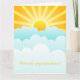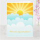 Det här kortet har en design med blå moln framför en gult sol med gult. Texten "Du är min solsken" kan anpassas efter behov.