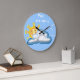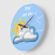 Lycklig sol lyfter ut från molnet Cheerful klocka med ett lycklig-meddelande
