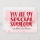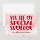 Fira kärlek med stil med vårt anpassningsbara "Du är min speciella någon" valentinskort — en förtjusande blandning av sötma och personlig touch. Den söta typsnittet i levande rött uttrycker dina känslor, medan himmelsbakgrunden, prydd med hjärtan och en öm duva, skapar en drömsk och romantisk scen.