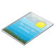 Utformningen har en ljusglänsande sol, moln och grönt gräs på rand med blå övertoning. Texten är helt och hållet anpassade.