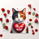 Denna Alla Hjärtans Dag, skicka din dam som älskar katter denna Trikolor Katt med ett stort rött hjärta som har, "Du Är Mitt Hjärta". Denna katt har gyllene ögon och små hjärtan runt omkring sig i bakgrunden. En perfekt vacker, söt dikt för din partner att njuta av finns på baksidan, och du kan också anpassa den!