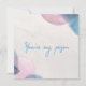 Fira den speciella koppling ni delar med vårt "You're My Person"-kort, prytt med ömtåliga blå och rosa vattenfärgssplotter för en touch av lekfull charm. Detta hjärtliga budskap är perfekt för att uttrycka din djupa band med den där speciella personen som har en unik plats i ditt hjärta. Med sin enkla men djupgående känsla är detta kort idealiskt för födelsedagar, årsdagar eller någon annan tillfälle då du vill påminna någon om hur mycket de betyder för dig. Låt din älskade veta att de är uppskattade och omtyckta med vårt "You're My Person"-kort – en vacker symbol för uppskattning som talar sitt tydliga språk.