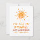 Ta bort någons dag med detta heliga Valentinkort! Med en lekfull, barnlik teckning i sol och det vackra budskapet "DU ÄR MIN SUNSHINE!" utstrålar den här designen värme och kärlek. Perfekt för barn till med vänner eller familj för att sprida leenden och solsken på Alla hjärtans dag.