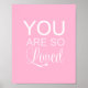 En enkel rosa typografi-konst med frasen "Du är så älskad". Perfekt för en babyflicka eller småbarnsrum. Anpassade färger tillgängliga på begäran.