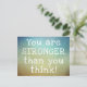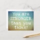 : Skicka ett meddelande om uppmuntran med detta "Du Är Starkare Än Du Tror" postkort. Med en iögonfallande abstrakt landskapsbakgrund och det inspirerande budskapet tryckt i vitt, är detta postkort perfekt för alla som behöver ett påminnelse om sin inre styrka. Använd det för att skicka en personlig hälsning, som en genomtänkt gåva eller till och med som heminredning. Sprid positivitet och motivation med detta inspirerande postkort.