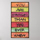 När du behöver lite puckel, lite uppmuntran och lite tro på dig själv, titta på denna vackra, färgstarka teckning med ett inspirerande, kraftfullt citat. Citatet lyder: "Du är starkare än du någonsin visste." Perfekt till ditt hem, kontor, klassrum eller studio. En underbar gåva till alla som behöver lite extra tro på sig själva. Baserat på mina ursprungliga teckningscanvaser, tillverkade av akryliker, bläck, hantverk och och prismakolor. Se fler av mina teckningsobjekt på: www.Zazzle.com/FunLovingArt