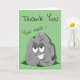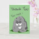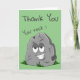 Rolig grå seriefigur-sten med halvslutna ögon och en stor tandig flin. Han vilar på fräscht grönt gräs och orden "Tack, du är toppen!" i mörkgrå bokstäver överst på stenen.