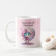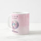 Den här roligten kaffet mugg har en lätt färgad robot och en måne på en mjuk rosa vattenfärgsbakgrund med ett vismiskt teckensnitt som säger "Du är ur världen!"