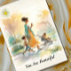 Akvarell Du är vacker- Morsdagskort Akvarell Elegant afroamerikansk mamma - Morsdagskort Fira skönheten och styrkan i moderskapet med detta varsamma akvarell-morsdagskort. Med en stilfull mamma som går självsäkert längs en solbelyst trädgårdsstig med sina barn, fångar denna illustration gracen, värmen och den vardagliga magin i att vara en mamma på språng. Mjuka färger och flytande penseldrag skapar en fridfull och upplyftande scen som hyllar den kärlek, energi och omsorg som mödrar ger sina familjer varje dag. Detta kort är perfekt för att uttrycka ett uppriktigt tack till en mamma som balanserar livet med skönhet, tålamod och styrka.