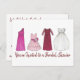Bara anpassa med din information! Postkort design har en original markör illustration av en rad brudtärnor, blomsterflicka, brudens mor och brudklänningar. Perfekt för en möhippa, brud shower, bröllop eller förlovning.