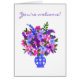 Ett söt "Du är välkommen"-kort med en vas av rosa och blåa blommor, från en handmålad papper kollage av Judy Adamson. Om du vill att texten på framsidan ska ändras på något sätt (t.ex. en annan ålder, person eller språk), kontakta mig genom min affär och jag är lycklig för att göra det rakt bort.