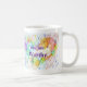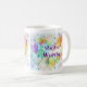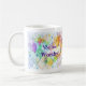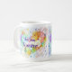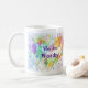 Kaffet kopp säger: "Du är värdig." Vattenfärgsmålningen har överlappande hjärtan i en regnbåge av färg. Bilder ritas och målas i vattenfärg. Ett enda stort hjärta definierar gräns mellan teckning och bilder som målar hjärtat. Konsten är en hyllning till samhället kärlek och vänskap i våra liv eftersom den överlappar världen. Kaffet mugg ger underbara gåvor. Laurel Lattos ideella konstverk DonnaBellas Änglar. uppdrag utan vinstsyfte är att ge inspirationskonst till psykisk hälsa hälsa. Mottot är "Medicine Heals the Body, Art Heals the Soul". Läs mer online på DonnaBellasAngels.org.