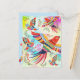 Framsidan på dessa färgglada kort har mina akvarellfåglar och bär, med orden "Du får mitt hjärta att sjunga" på en flerglad tie-dye-inspirerad bakgrund. Baksidan har en folkkonstfågel och ett rosa hjärta på en ljusblå bakgrund, redo för vilket meddelande du än väljer. Ett fint " tack "-kort, "hej och hej", "jag älskar dig" "tänker på dig" eller något annat meddelande du väljer. Whimsical konst & design av Tuzi Willioams.