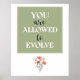 Skapa lugn i ditt utrymme med denna vertikala minimalistiska affirmationsaffisch med den stärkande frasen ”You Are Allowed to Evolve” (Du får utvecklas). Designad med en ren genomskinlig bakgrund och modern typografi smälter denna affisch enkelt in i neutrala och samtida interiörer.
