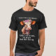 Tecknadens svarta och vita design med en sassisk ko med texten "Du förbannar för mycket Heifer Du andas för mycket roligt Heifer" för en humoristisk och ljusare beröring.