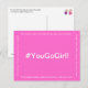Provocerande och sassy Breast Cancer-Tecknader och humoristiska illustrationer från april McCallum. Den här roligtens rosa och vita vykort innehåller det fetstilta orden #YouGoGirl! (med social-mediemaket) i mitten, omgiven av andra uppmuntrande ord. Ytterligare text omfattar: "Tänka lycklig tankar.", "Ett litet bittyt steg.", "Njut av stunderna.", "Du kan göra det här." och Mer. Skicka lite "lycklig" till någon du kärlek idag!
