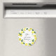 Du spelar en roll, tack magnet med en söt mönster av citroner med grönt löv och färsk citronskivor. En vit cirkel som läggs ovanpå med texten inuti.