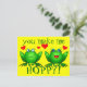 Du gör mig till Hoppy! Ljusstark design av två lycklig grodor, ett sött par! Bakgrunden till färg är gult, som kan representera lycka, optimism, solsken och en varm personlighet. Om du vill ha en annan bakgrund i färg kan du ändra den med hjälp av anpassningsalternativet.Begreppet grodor i andlighet och mytologi omfattar glädje, vänskap, samhälle, musik, sångning, firande, drömmar, magi, lycka till och bra hälsa. De ursprungliga grodorna av tecknad kommer från ett videospel som jag har gjort. Från det området har de utvecklat sina egna liv. I spelet heter de Twitchy och Beulah. Grodor har till sin natur extremt känslig hud. Som amfibier andas de delvis genom huden, och bristen på eller mängden grodor i ett område avspeglar miljöns hälsa. Ge detta till alla som tycker om ljusa färger, grodor och att vara hoppfulla! Sylvia Chaume. Hoppy Blessings!