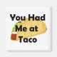 Låt alla få veta kärlek för en bra taco! Denna magnet är roligt och håller så mycket sanning samtidigt. En utsökt tittar taco skickar dig till butiken för att få alla korrigeringar för att göra dem. Ta en åt dig själv eller ännu bättre än en present åt någon annan.