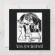 Gå med oss. Vi har ett party och ni är inbjudna. Att ha ett nytt år party eller en annan typ av roligt samlas, använda denna unika inbjudan och alla kommer att komma. Den här djärva, återskapande, grafiska utformningen av vintagen party firande kommer att ge dina vänner, familj och korrespondenter ett leende. Du kan anpassa och anpassa den omvända sidan med din händelseinformation, namn, adress eller OSA. Spara datumkortet Underbart.