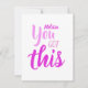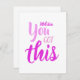 "Du har det här" med mottagarens personlig namn. Vem vet du att det krävs en dos inspiration och uppmuntran och att deras förmåga i fantastisk bekräftas? Ge dem detta budskap om självförtroende med den här contemporaryn och minimalistisk utformning av rosa-typografi, som elegant och djärvt påminner din speciella person "Du har this". Ange en vit bakgrund på det här platta hälsningskortet och anpassa designen med namn genom att klicka på personlighetsknappen. 2020 © Kris Harty Step by Step Inspiration