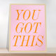 Modern minimalistisk motivering poster i rosa och orange färg.