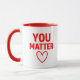 Börja varje morgon med ett meddelande som betyder något! Den här keramiska "You Matter"-mugg har fet röd text och en passande hjärtsymbol på en slimmad svart bakgrund. Med en kapacitet på 11 oz är det både mikrovåg- och diskmaskiner-säker. En hjärtlig gåva till vänner, familj, lärare eller någon som behöver en daglig upplyftning!