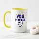 Börja varje morgon med ett meddelande som betyder något! Den här keramiska "You Matter"-mugg har fet röd text och en passande hjärtsymbol på en slimmad svart bakgrund. Med en kapacitet på 11 oz är det både mikrovåg- och diskmaskiner-säker. En hjärtlig gåva till vänner, familj, lärare eller någon som behöver en daglig upplyftning!