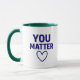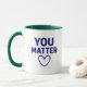 Börja varje morgon med ett meddelande som betyder något! Den här keramiska "You Matter"-mugg har fet röd text och en passande hjärtsymbol på en slimmad svart bakgrund. Med en kapacitet på 11 oz är det både mikrovåg- och diskmaskiner-säker. En hjärtlig gåva till vänner, familj, lärare eller någon som behöver en daglig upplyftning!